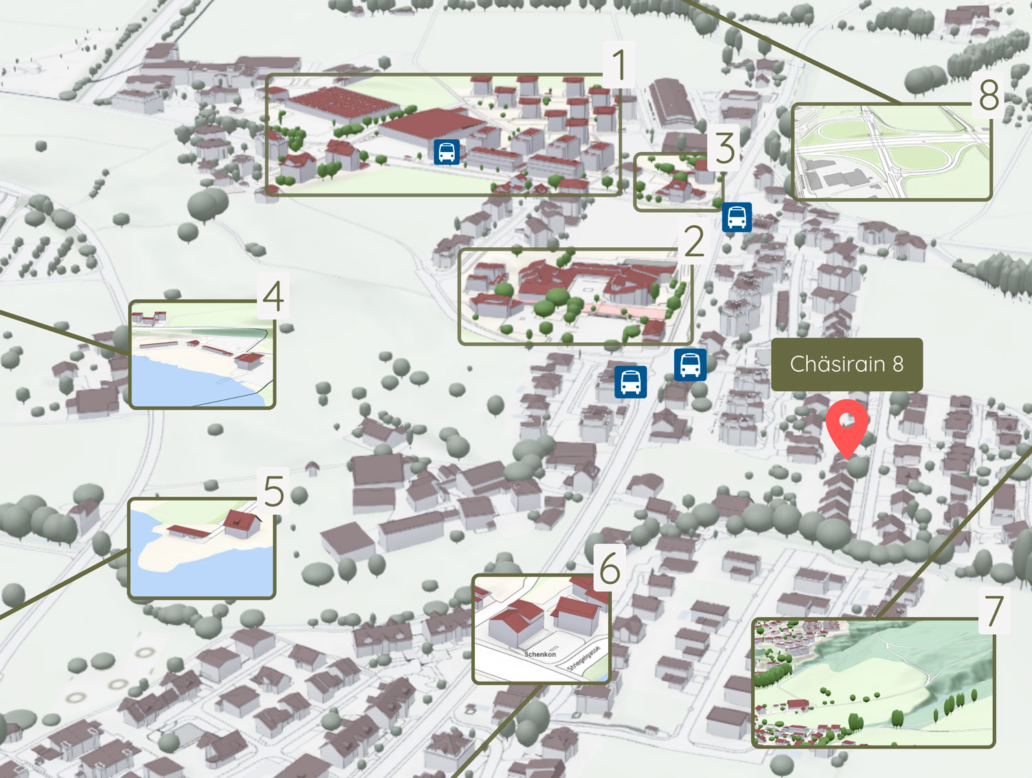 Ideal für Familien. Kindergarten und Primarschule liegen nur wenige Schritte entfernt – sicher zu Fuss erreichbar und mitten im Alltag integriert.